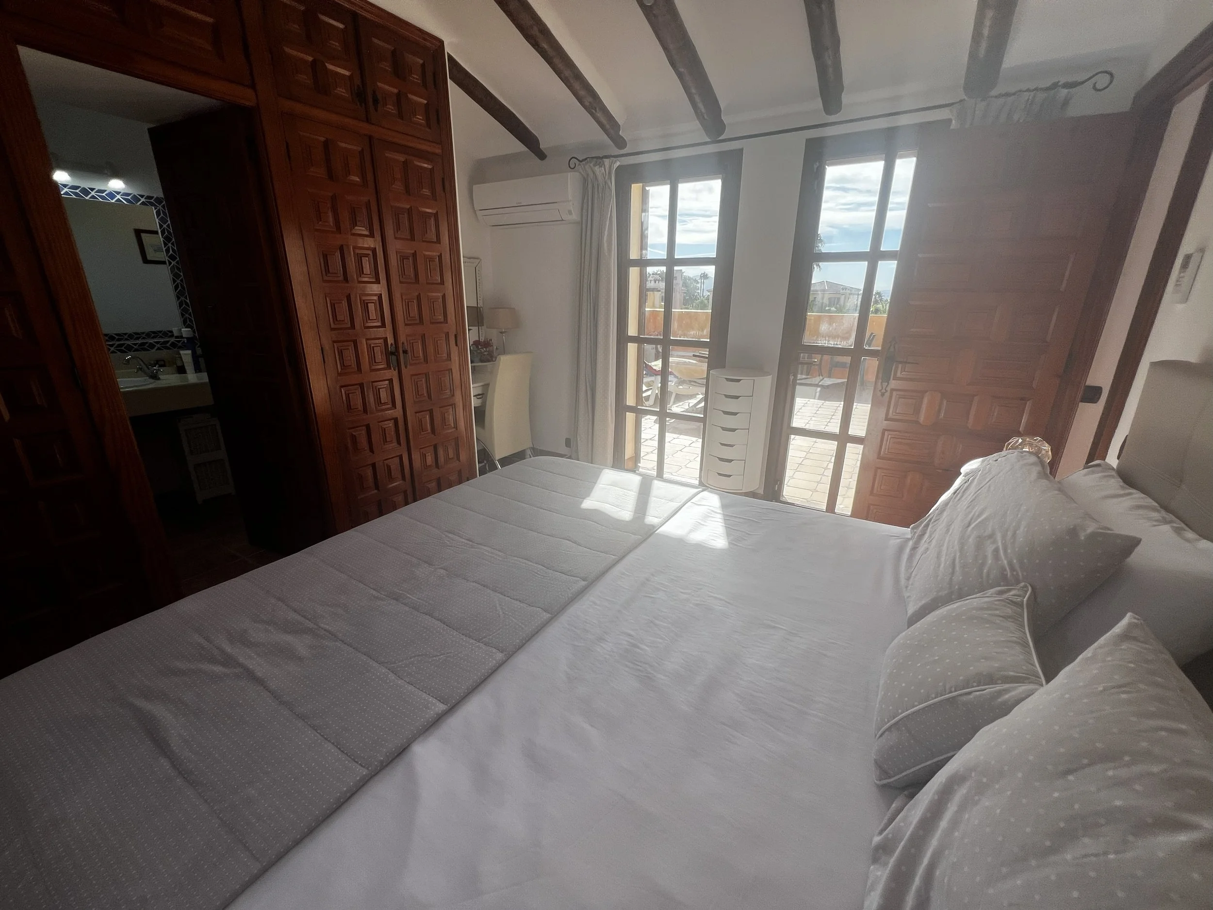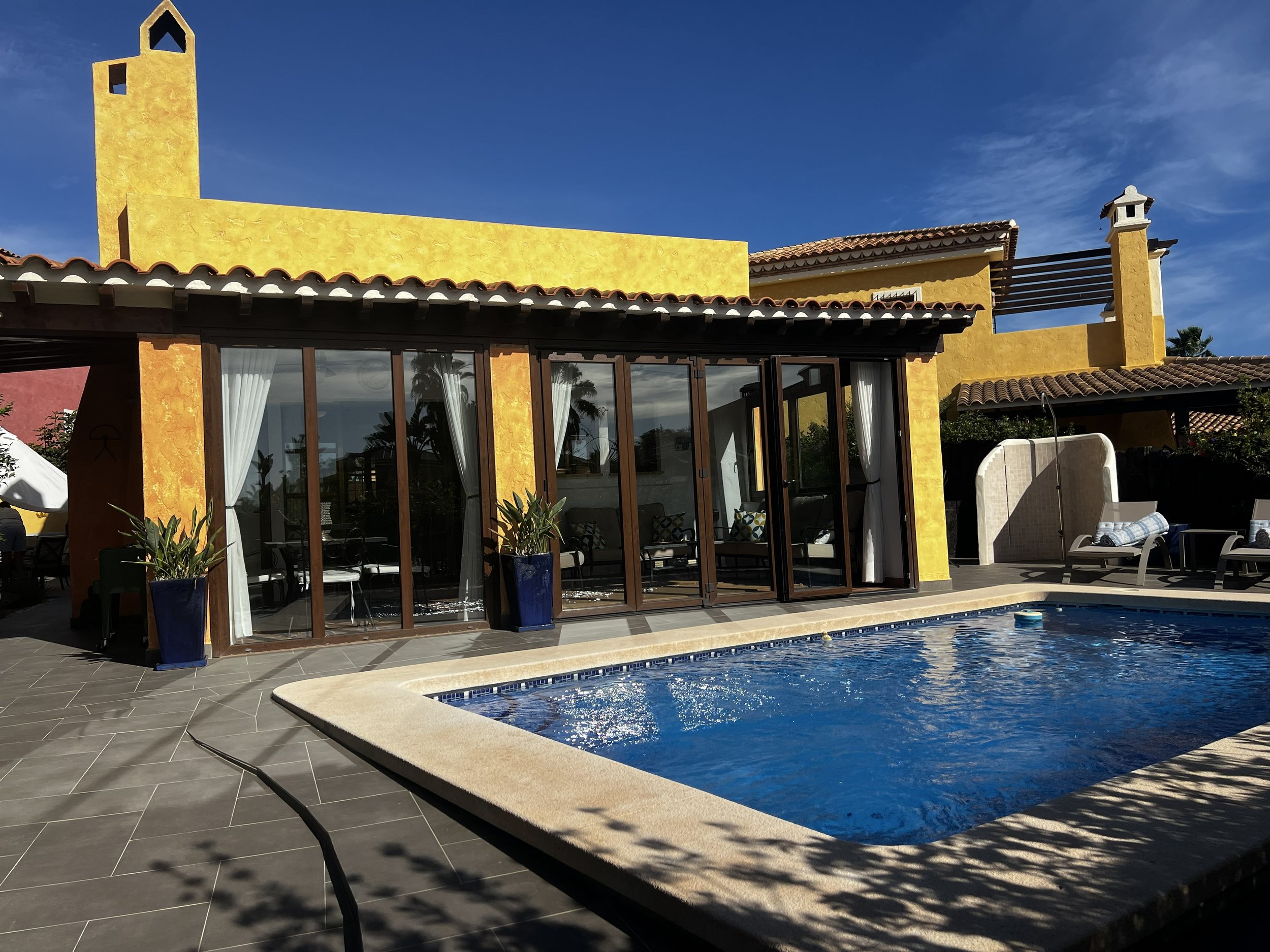 Located within the charming and intimate community of La Estrella, comprising just 14 properties, this immaculate detached cottage has undergone significant enhancements by its current owners. The property has been expanded onto the terrace area and features a spacious and light-filled sun lounge, perfectly positioned to overlook a private, heated swimming pool situated at the front of the home.