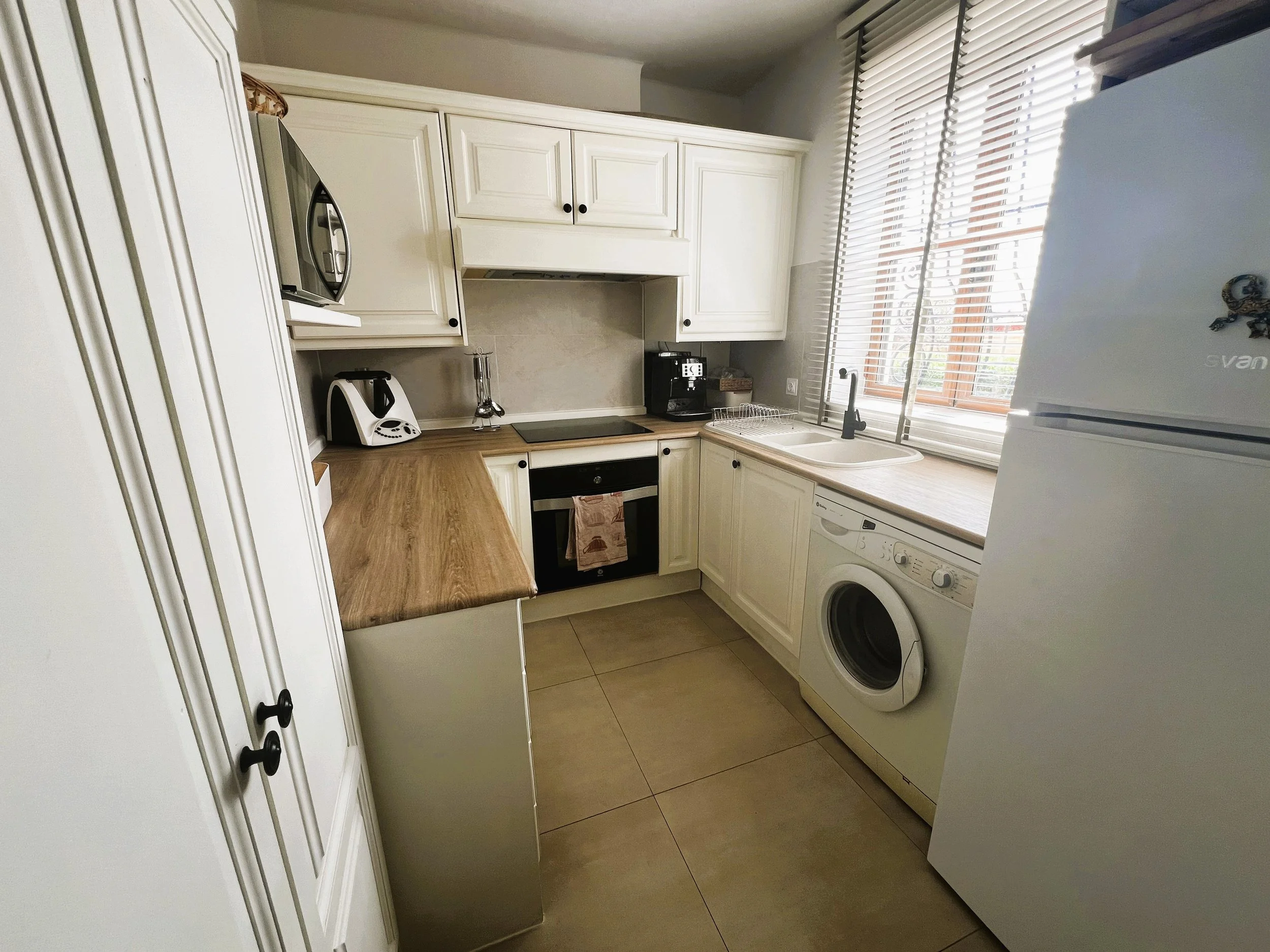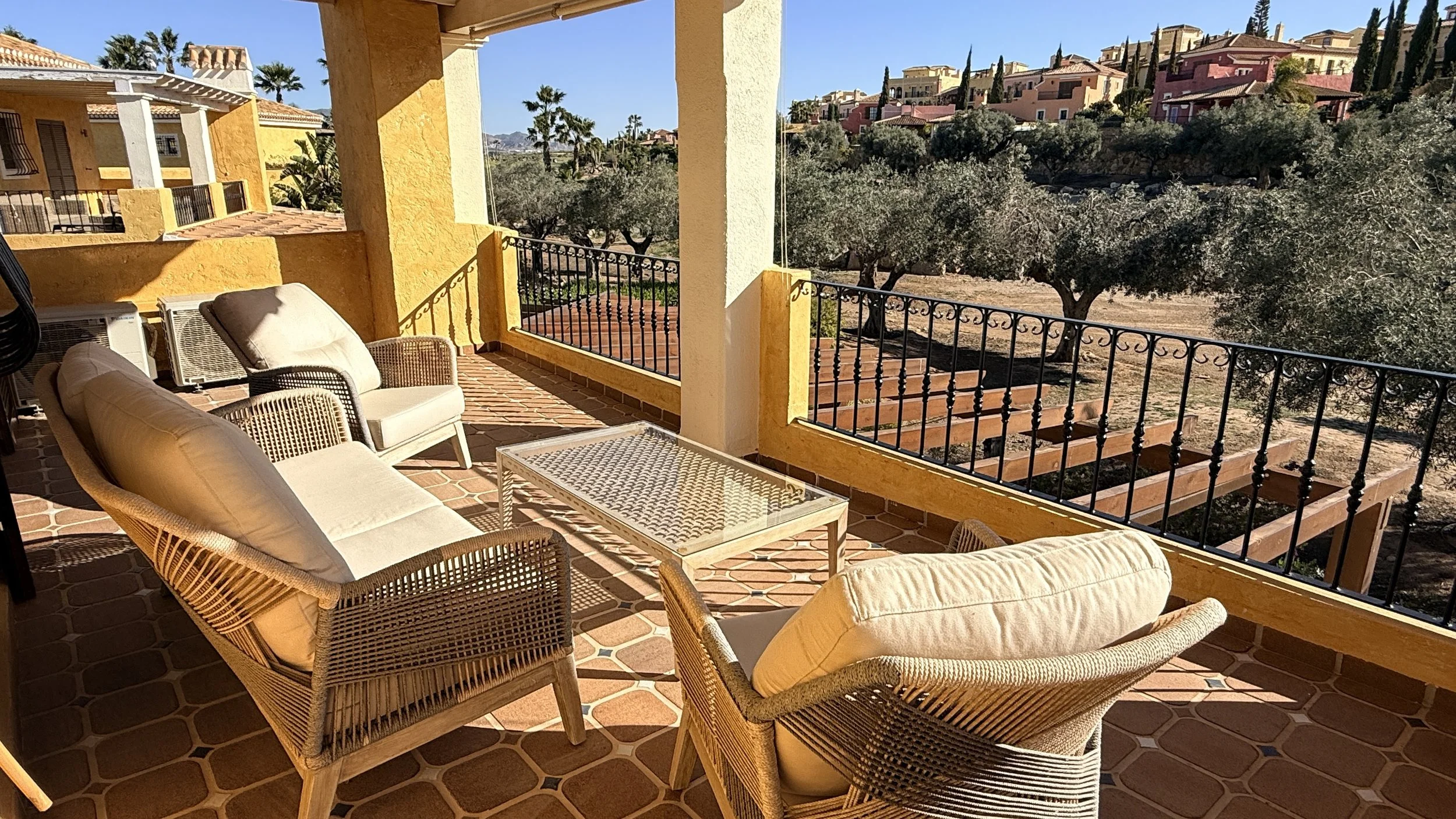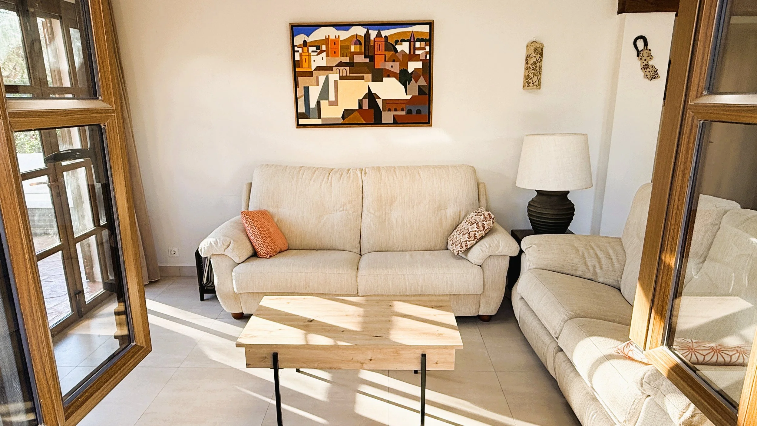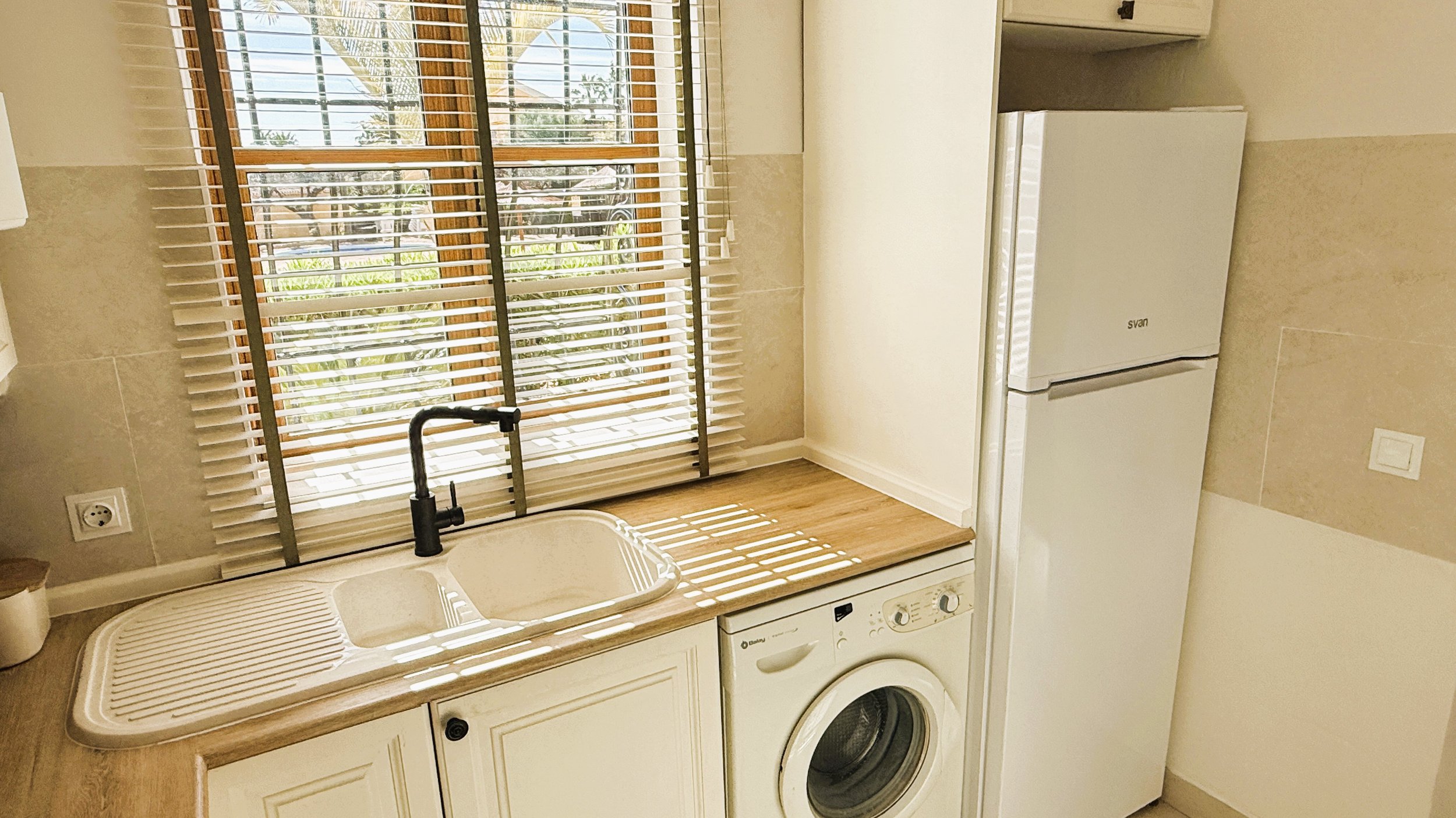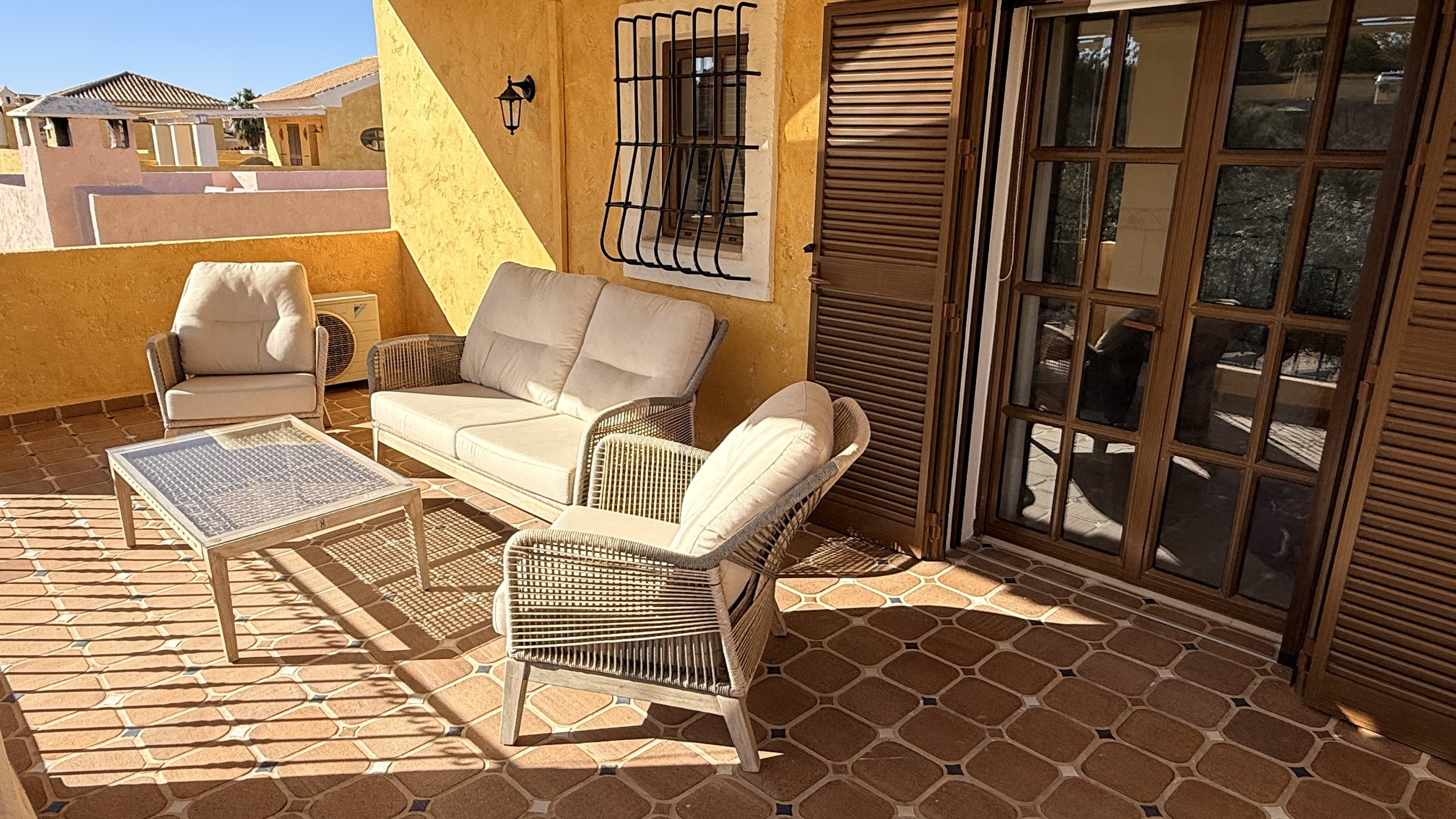 Within walking distance are all the resort’s amenities, including the Crocodile Club, putting green, practice area, El Torrente restaurant, and the cricket ground. The villa is meticulously presented, having undergone skilled renovations featuring modern, stylish floor tiles that provide a seamless look throughout. All doors have been replaced with attractive birch-style wood, which echoes throughout the cottage in details like the dining table, kitchen countertops, bathroom surfaces, and window blinds. Soft, calming colours create a bright and inviting atmosphere in every room.