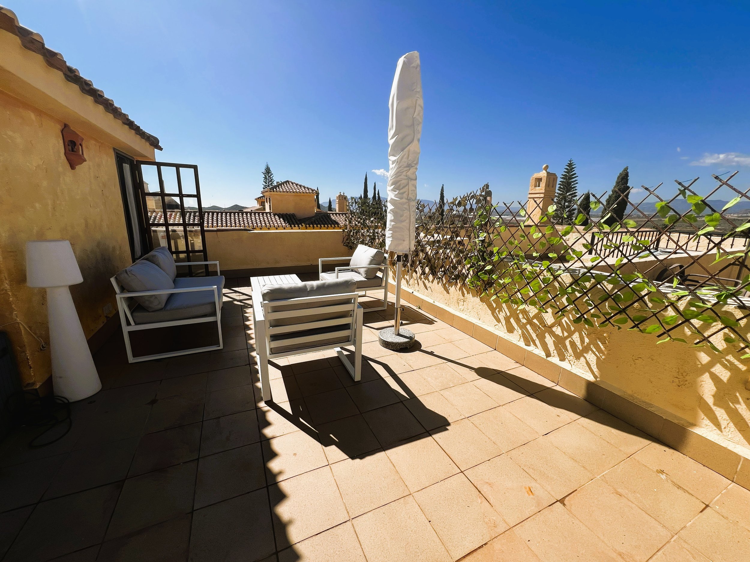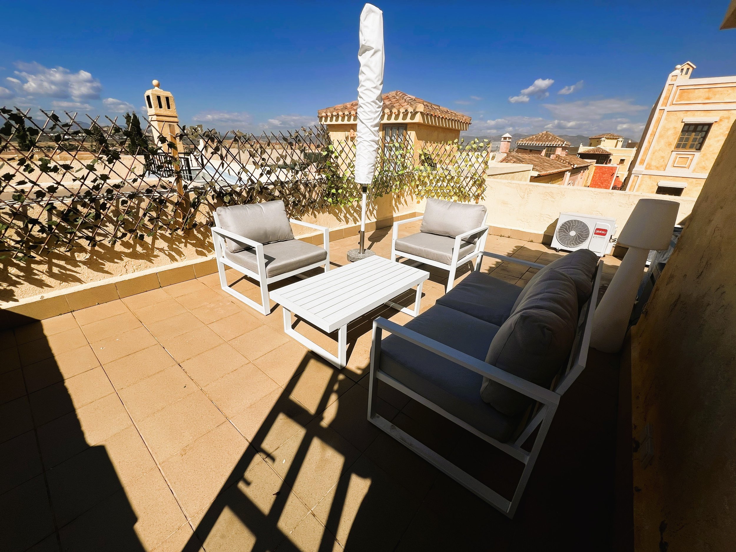 The property features a large roof solarium, ideal for sunbathing and outdoor dining, offering breathtaking views over the golf course. Additionally, there are two ground floor terraces that provide further space for relaxation and entertaining.