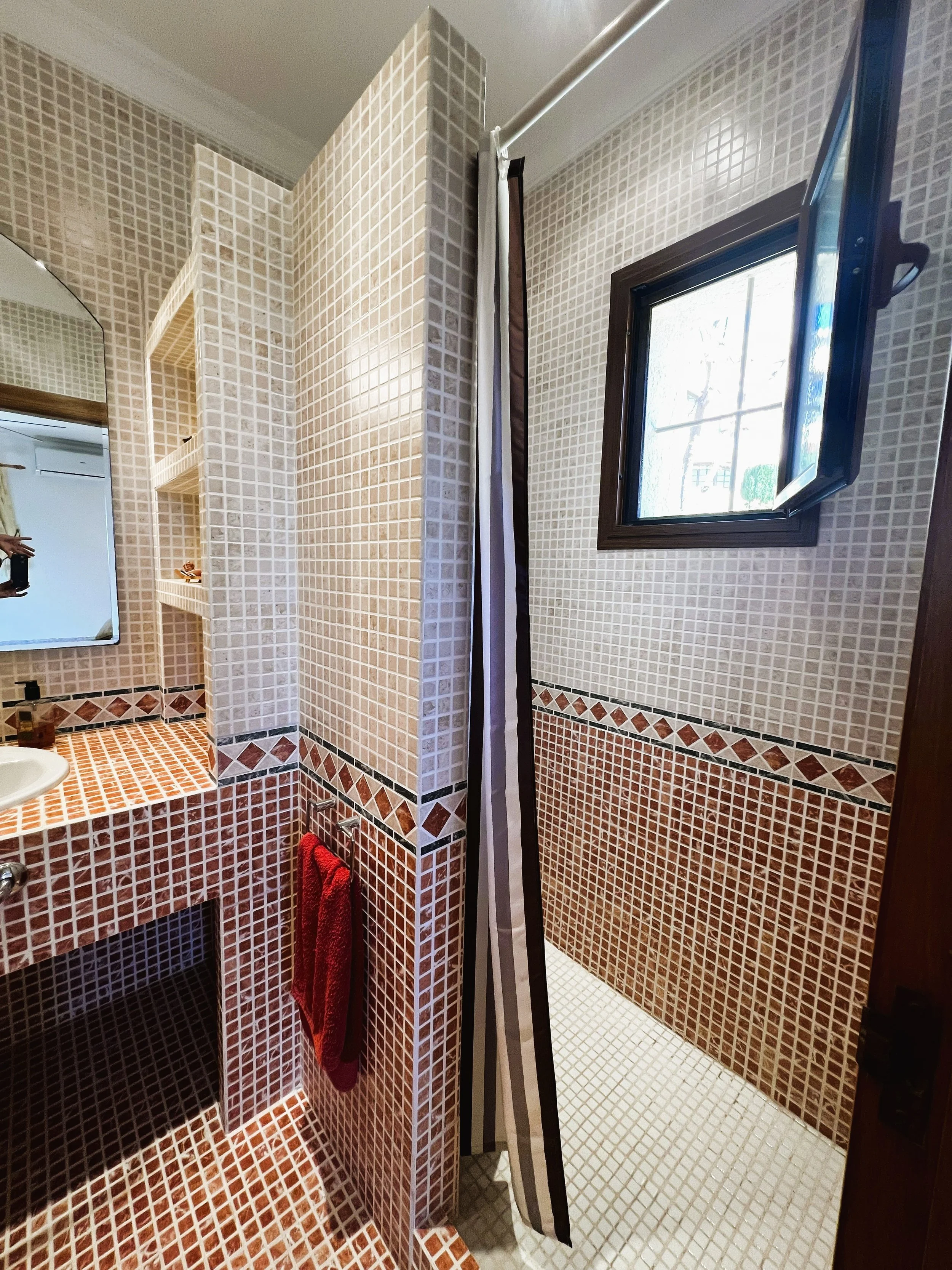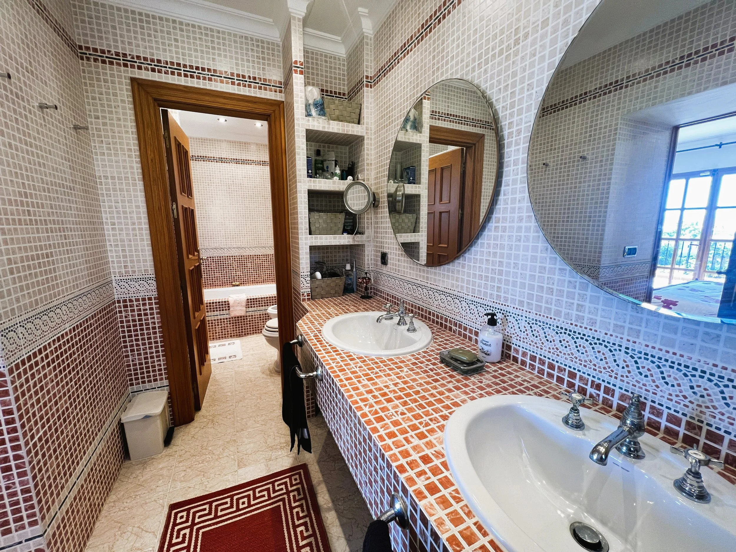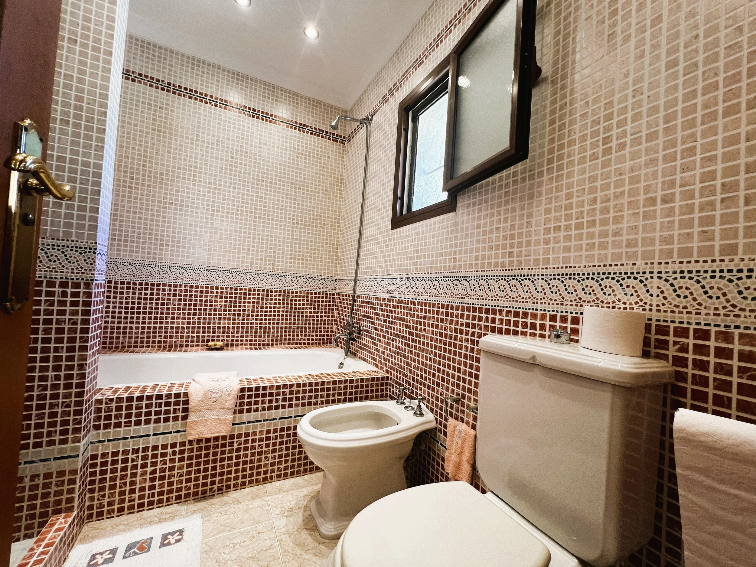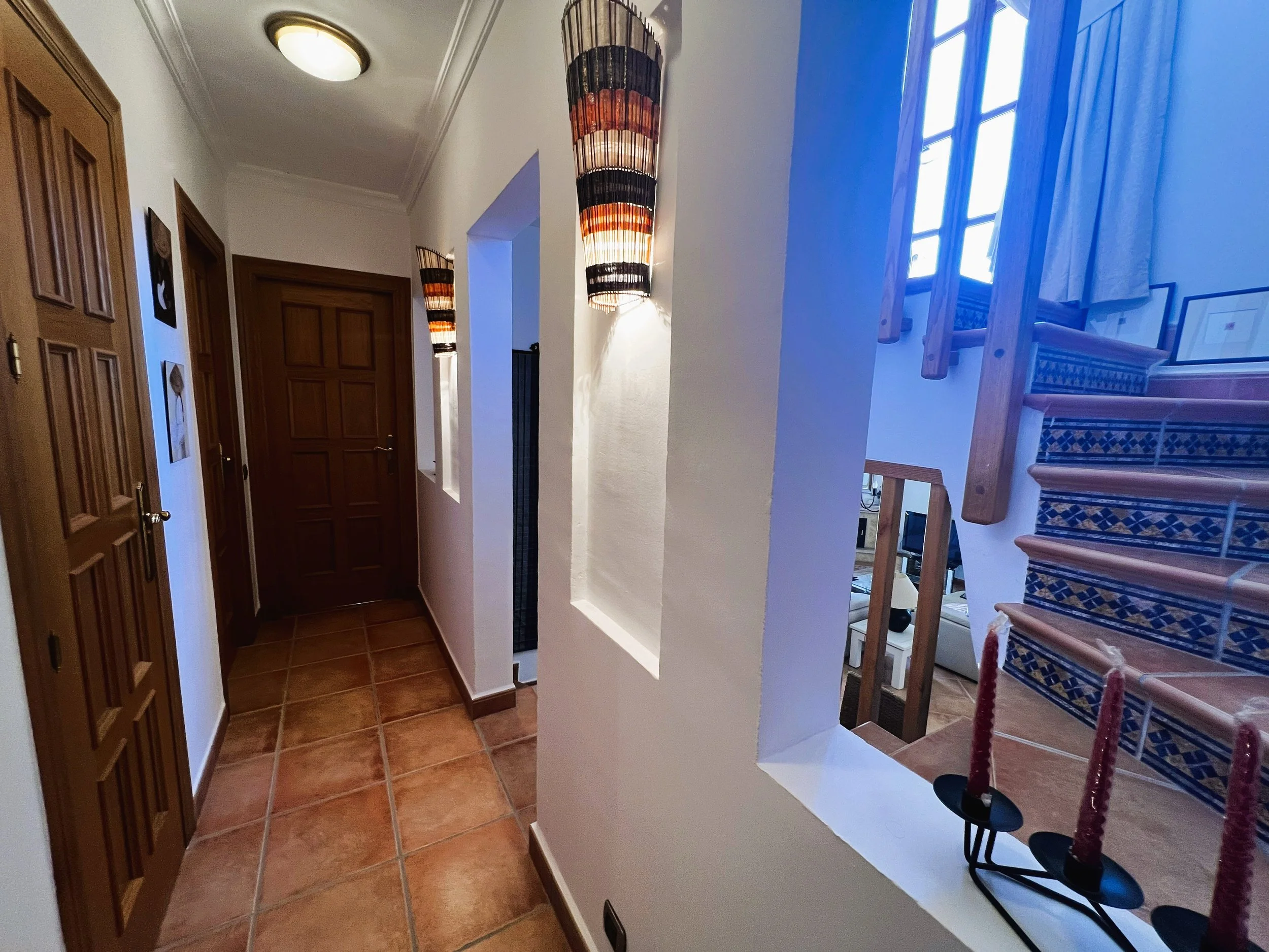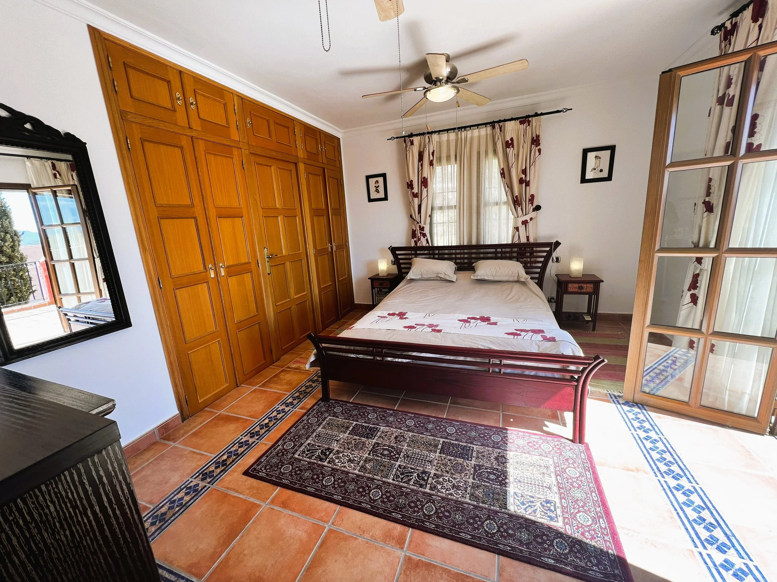 The villa provides superior accommodation, beginning with a welcoming hall and an extended living and dining area on the ground floor, complete with a cosy log burner. The semi-open plan kitchen is accessible via a substantial serving hatch and has been tastefully renovated to include ample storage, an impressive range cooker and a large American refrigerator. This space leads to a generous utility area and offers direct access into a breakfast room, which connects to an additional dining room.