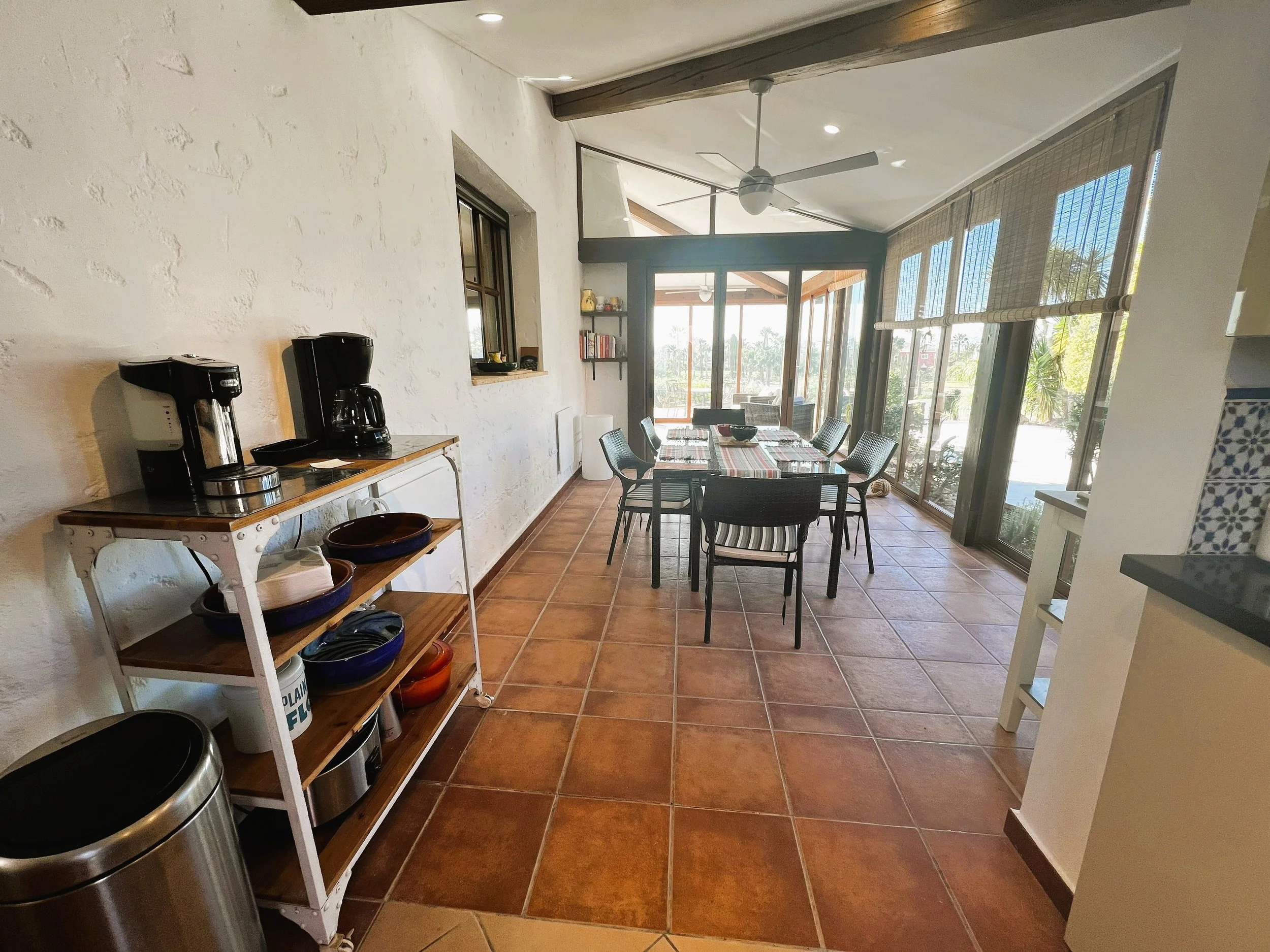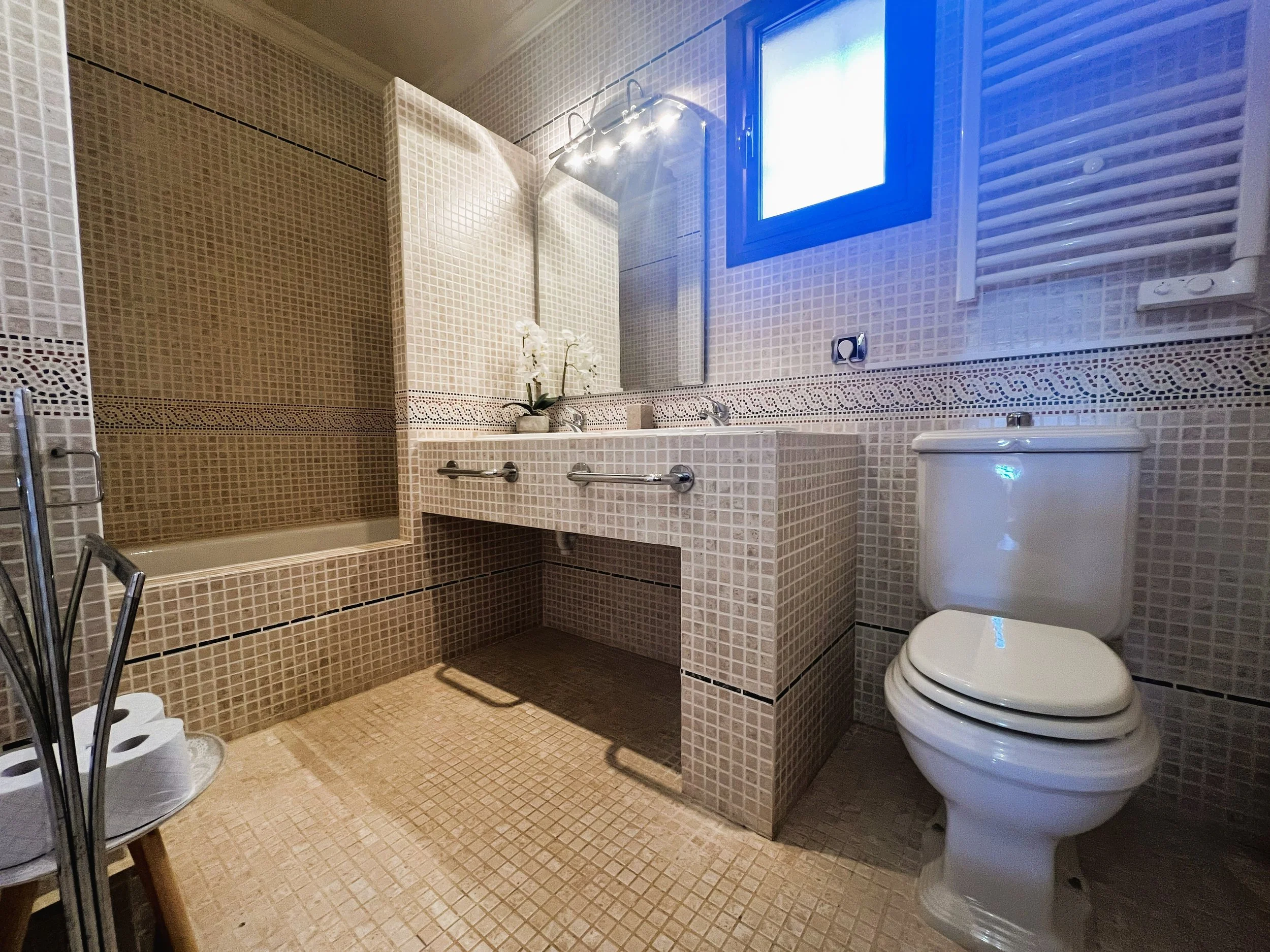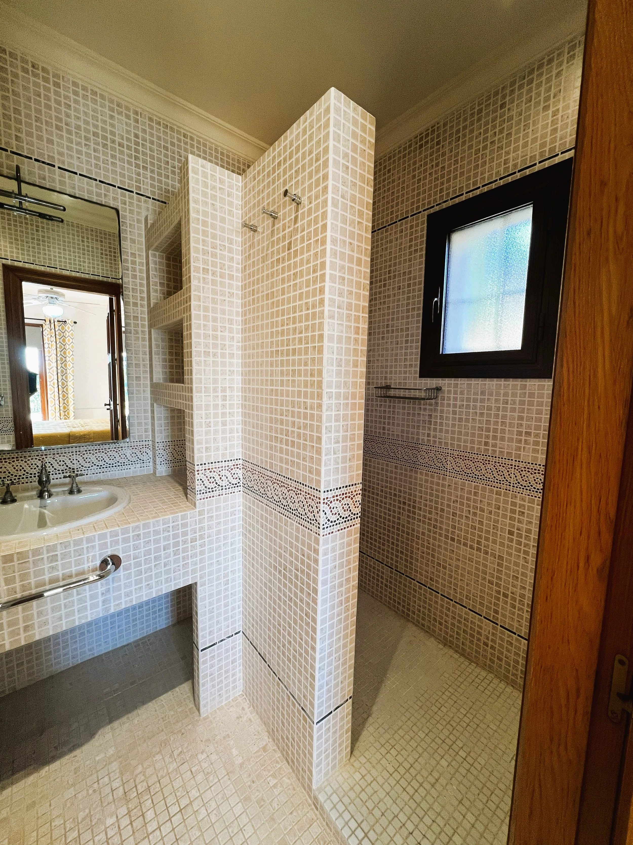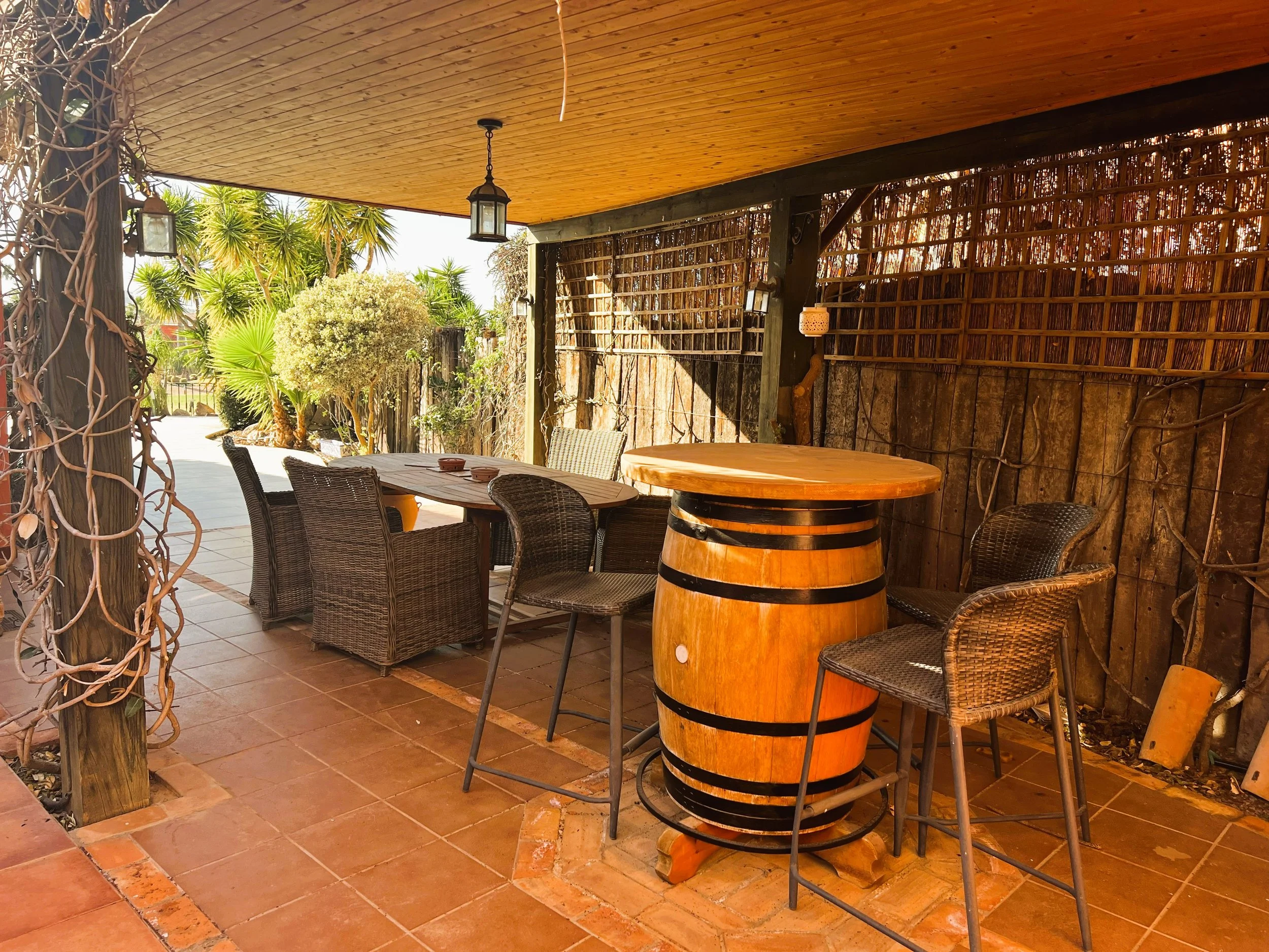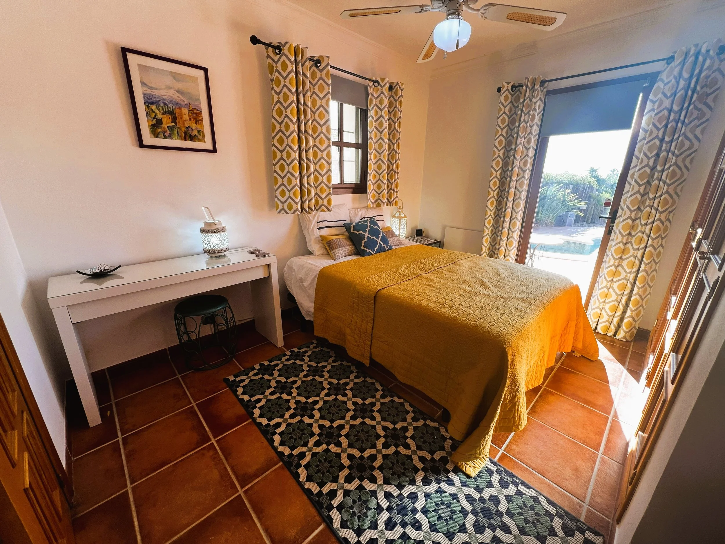 The villa provides superior accommodation, beginning with a welcoming hall and an extended living and dining area on the ground floor, complete with a cosy log burner. The semi-open plan kitchen is accessible via a substantial serving hatch and has been tastefully renovated to include ample storage, an impressive range cooker and a large American refrigerator. This space leads to a generous utility area and offers direct access into a breakfast room, which connects to an additional dining room.